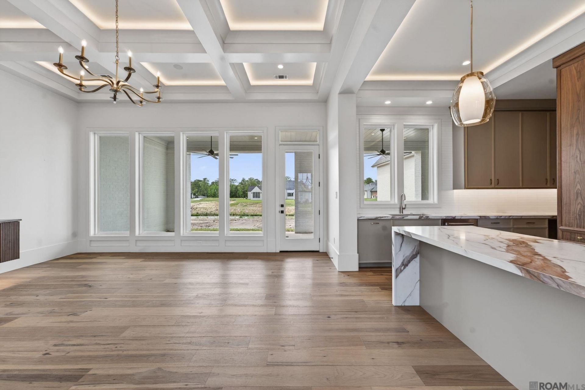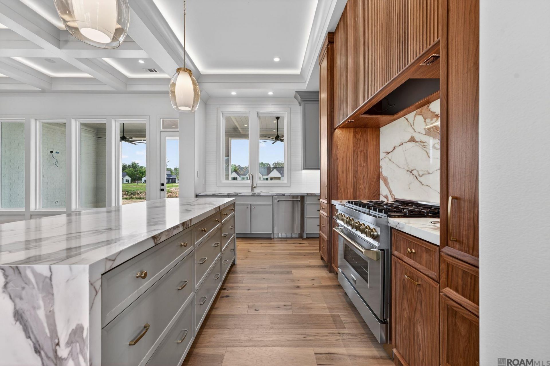 This STUNNING new construction in the Hidden Lakes subdivision offers space, detail, and functionality. Elevated Homes offers an impressive blend of modern amenities and elegant features. Over 3,100 living in this home features 4 bedrooms, 3.5 baths, and a versatile flex room. This open-concept includes wood flooring, custom cabinetry, a built-In bookcase with a remarkable hidden storage door. The living area showcases coffered ceilings, a walnut floating console flowing seamlessly to the gorgeous kitchen with a waterfall island, and quartz countertops. The primary suite includes a unique cathedral ceiling, relaxing soaking tub, floating double vanities, custom tile with an arched opening bringing you into the shower. Large walk-in closet with tremendous space and storage. Additional features include walnut stair treads with wrought iron railing, a grand chandelier soaring 12 feet above the stairs, and a massive window you can see from outside the home. Spacious 2-car garage with additional bay providing space for storage or equipment. Set on approximately 1.01 acres, this home includes a front porch and a backyard patio with a fully equipped outdoor kitchen. Jam out with your own distributed audio system, set the mood with lighting control. This incredible home is adorned with too many custom features to count! Flood Zone X. Ascension Parish school district with convenient access to shopping and dining.