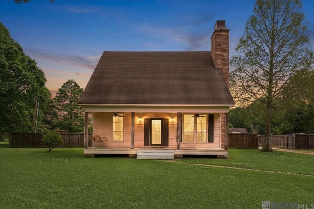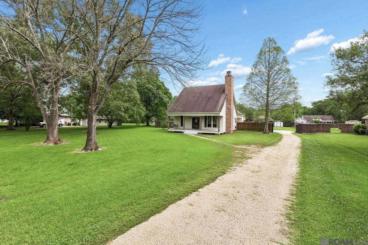 Wonderful custom Acadian-style home built by Passman Homes, offering timeless charm and quality craftsmanship throughout, featuring a welcoming front porch with BEAD BOARD ceiling, PORCH SWING, and only gorgeous land to look at. Located in flood zone X- NO FLOOD INSURANCE required and never flooded! The layout offers 4 bedrooms and 2.5 baths, with the primary suite located downstairs and three bedrooms upstairs. The primary suite overlooks the pool, has dual vanities, walk in shower, garden tub and a huge walk in closet. The home provides abundant storage with multiple walk-in closets and custom solid wood built-ins. You'll find a gourmet kitchen with granite countertops, CUSTOM CABINETRY, POT FILLER, corner kitchen sink, and STAINLESS STEEL APPLIANCES, opening into a spacious OPEN living area with a BRICK FIREPLACE. Additional functional spaces include a MUDROOM, pantry, and laundry room on the main level. Recent updates include NEW WINDOWS, newer HVACs (downstairs 1yr, upstairs 2yrs), and newer water heater (2 years). Situated on nearly 1 ACRE, the property is fully fenced and includes an ELECTRIC GATE, POOL, SOLAR PANELS (electric bills average around $80/mo!!!), ELECTRIC CAR CHARGER, BOAT COVER, CHICKEN COOP, RAISED GARDEN BEDS, FRUIT TREES, SECURITY SURVEILLANCE, AND STORAGE ROOM off the 2 car carport. THE POOL is SALTWATER, gunite and inground. Located on a quiet, dead-end street surrounded by larger acreage tracts, this setting offers privacy and minimal through traffic. Come check it out and fall in love at first sight!