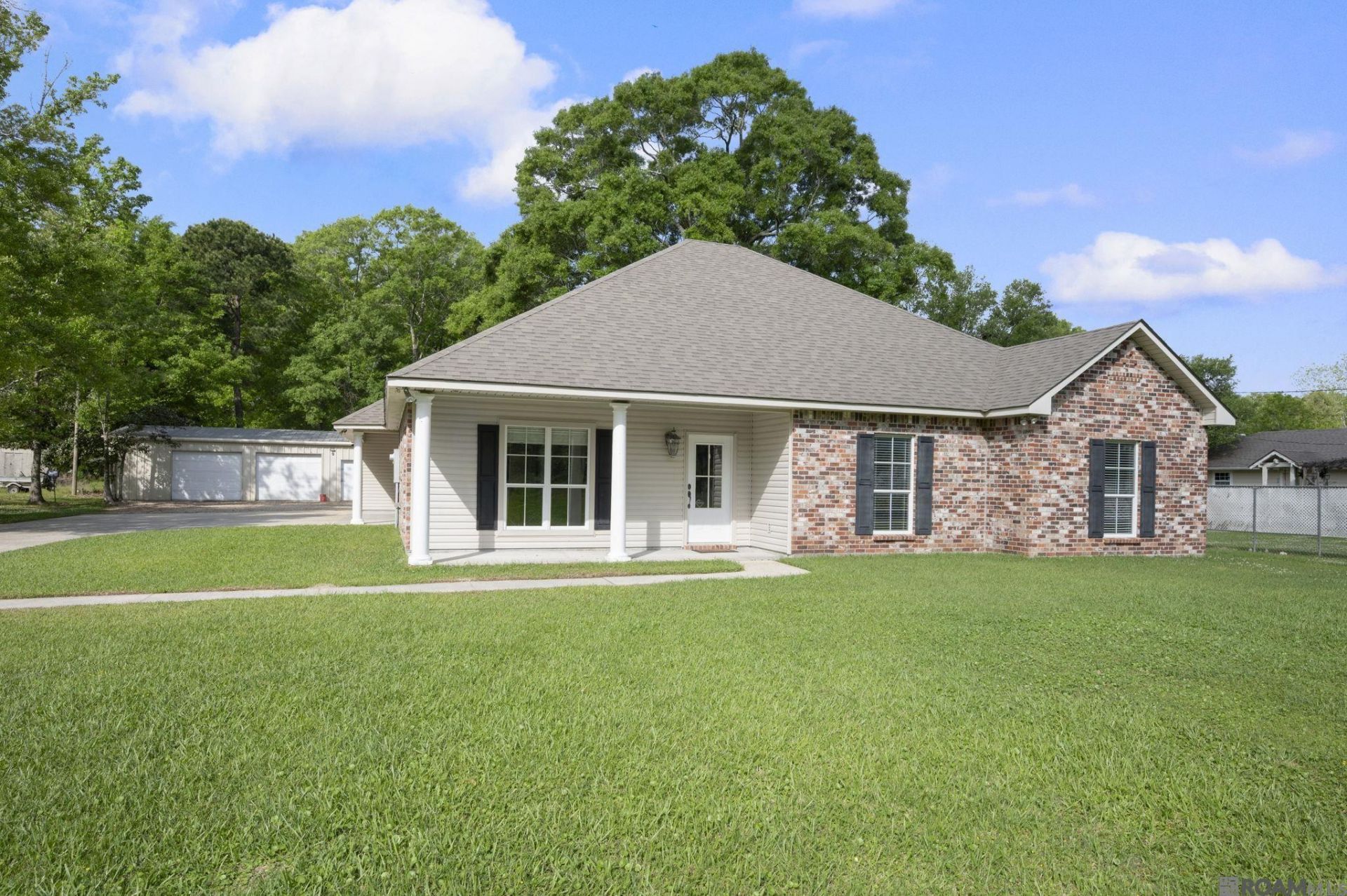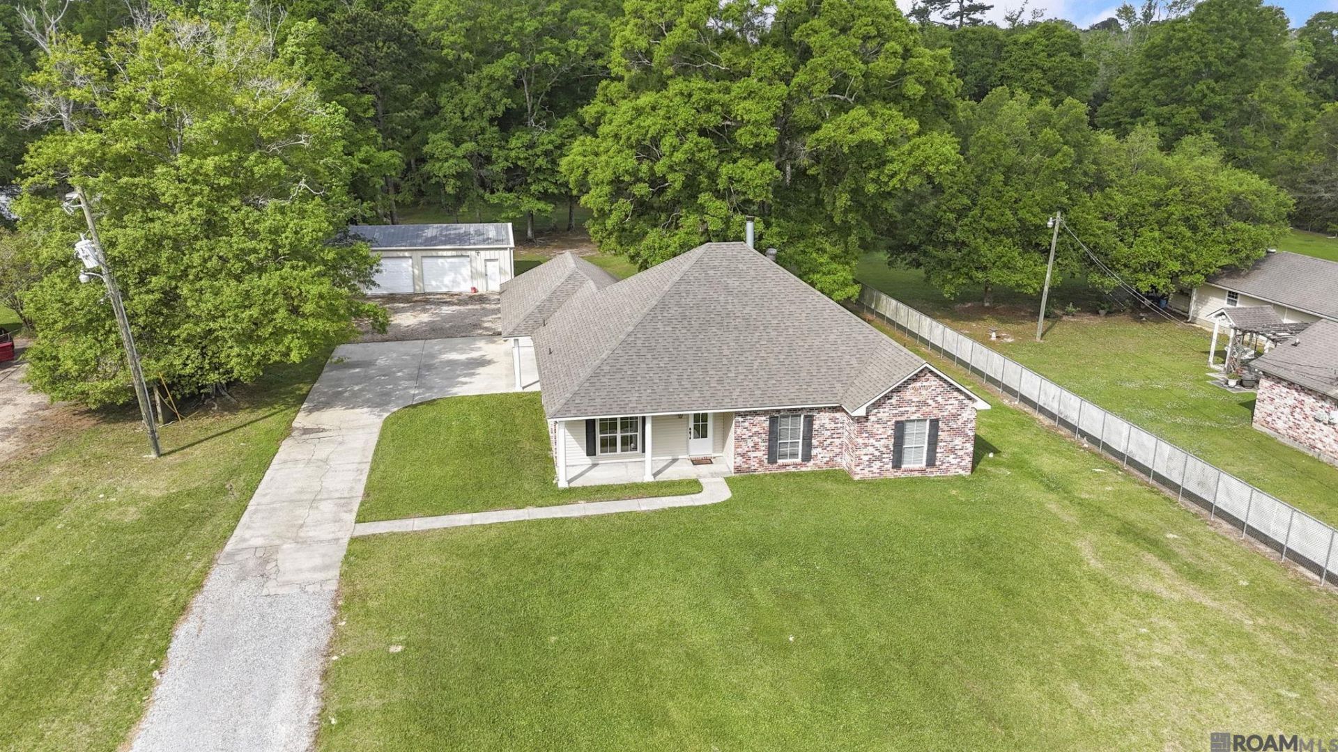 Situated on 1.24 acres, this beautifully maintained 3 bedroom, 2.5 bath home offers over 1,800 living square feet filled with custom touches. From the moment you walk in, you are greeted by stunning stained and scored concrete floors, crown molding, abundant natural light, and neutral paint colors throughout that create a bright, inviting feel. The living room centers around a cozy wood burning fireplace and flows seamlessly into a well appointed kitchen featuring granite countertops, custom cabinetry, and a gas stove. A convenient half bath is tucked just off the kitchen, ideal for guests. The spacious primary suite is designed for comfort, offering a large en suite bath with dual vanities, a large custom tile shower, and an oversized walk in closet. Step outside to an extended covered rear patio perfect for entertaining or unwinding, and overlooking a peaceful backyard shaded by mature trees. The attached storage room off the carport adds everyday functionality, while the detached shop provides the perfect space for hobbies, equipment, or additional storage. With a new roof, low flood insurance, and a peaceful setting that offers both space and privacy, this property is a must see! Schedule a showing today!