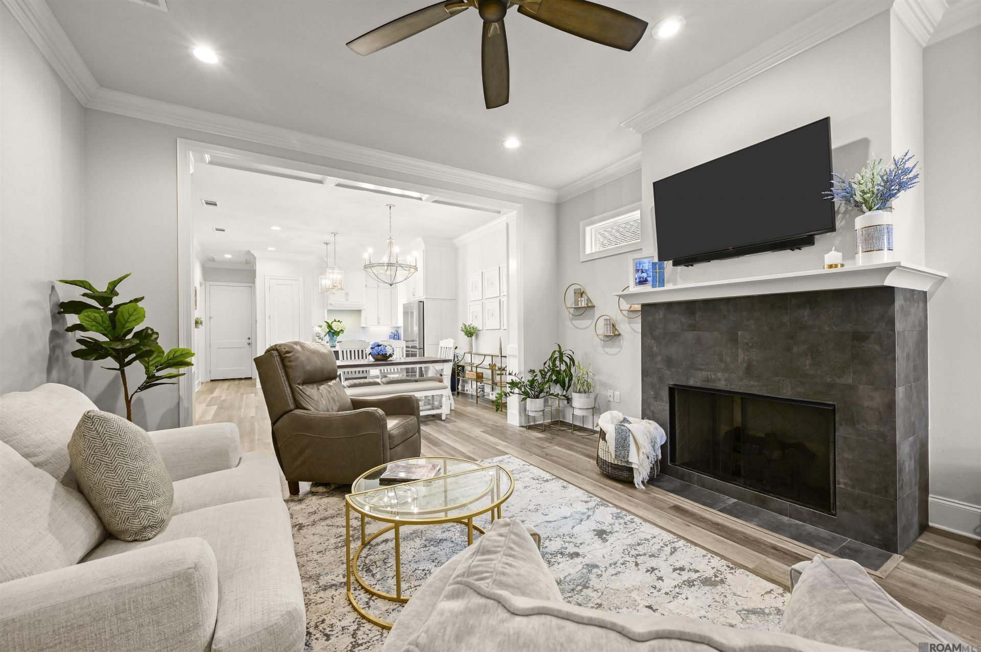 Welcome to 4855 Crestfield Way, a thoughtfully upgraded 3-bedroom, 2-bath custom home built by Waguespack Homes, ideally positioned on a corner lot with direct views of the neighborhood park in the Village at Conway. This home stands out with intentional upgrades that enhance both style and functionality. The kitchen features quartz countertops, a 36 five-burner gas range, stainless steel appliances, soft-close cabinetry, and cabinets extended to the ceiling for added storage. Upgraded lighting and under-cabinet illumination create a clean, modern feel while adding everyday convenience. The open-concept layout flows seamlessly into the dining area and outdoor living space, creating an ideal setup for entertaining. The primary suite offers a private retreat with wood flooring in both the bedroom and closet, dual vanities, a standalone soaking tub, a custom walk-in shower with built-in bench, and a spacious walk-in closet. Outdoor living has been expanded and elevated with an extended patio, epoxy finish, brick stairs, and a private brick wall for added privacy. The space is complete with a built-in Blaze grill, outdoor refrigerator, and an automatic phantom screen, allowing for year-round enjoyment. Additional improvements include a full gutter system and an expanded driveway with added concrete for three-car parking. Located in the Village at Conway, residents enjoy parks, lakes, walking trails, a community pool, work out room and a vibrant town center with shopping, dining, and community events nearby. A well-designed home with thoughtful upgrades and a lifestyle-focused setting.