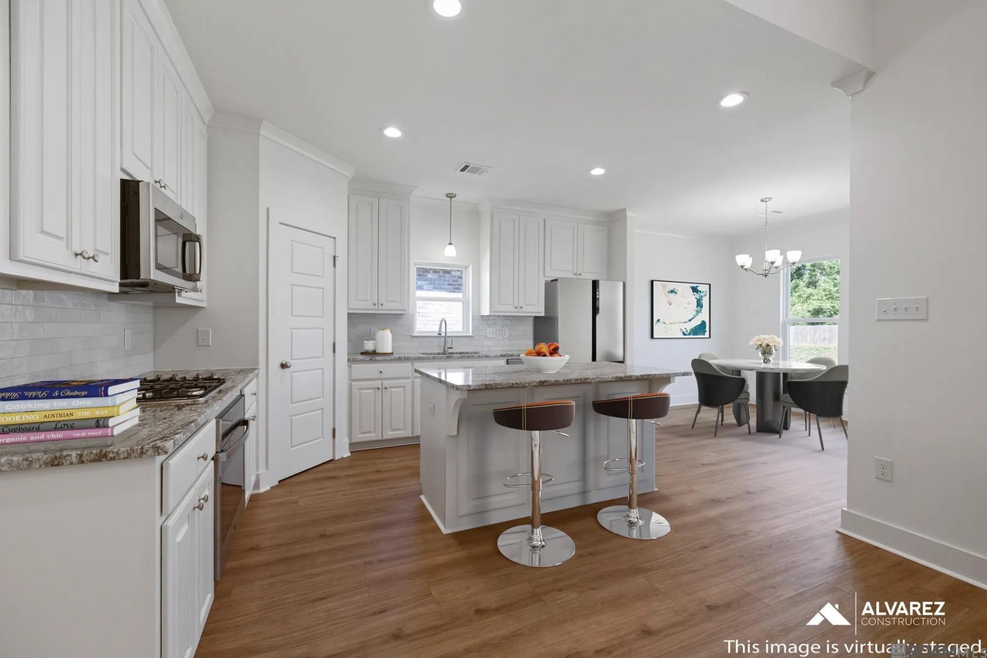 4.99% (5.73%) interest rate on GOV loans + $10,000 closing cost assistance available! Estimated completion: complete and ready to move *TO BE ELIGIBLE FOR A LOW INTEREST RATE ON GOV LOANS & CLOSING COST ASSISTANCE, A BUYER MUST USE SELLER'S PREFERRED MORTGAGE & TITLE COMPANY. NOT AVAILABLE ON ALL HOMES. OTHER RESTRICTIONS APPLY. CONTACT COMMUNITY SALES MANAGER FOR DETAILS.* Introducing the Larch home: a single-story, 4-bedroom, 3-bathroom residence designed with open and spacious living areas featuring 12' high ceilings in the living and dining areas. Enter through the foyer to find the dining area seamlessly connected to the living room. The kitchen, located behind the living room, includes a breakfast area, a chef's island, WiFi smart appliances, a gas cooktop, a separate wall oven, and a walk-in pantry. The owner's bedroom offers an en-suite bathroom with dual vanities, a walk-in shower, a garden tub, a WC, and a walk-in closet. Bedroom 2 is off the living area, with Bathroom 2 and an extra linen closet nearby. Bedrooms 3 and 4 are situated off the hallway leading to the garage, along with Bathroom 3 and a full-sized utility room. The Larch home combines modern amenities and a thoughtful layout for comfortable, luxurious living. Level 2 Luxury Vinyl Plank in all living areas and owners bedroom and closet Upgraded the fireplace surrounding tile to a level 4 Upgraded granite countertops to a level 2 throughout the home Upgraded the kitchen backsplash tile to a level 4 passion tile Upgraded the owners shower to a tiled shower